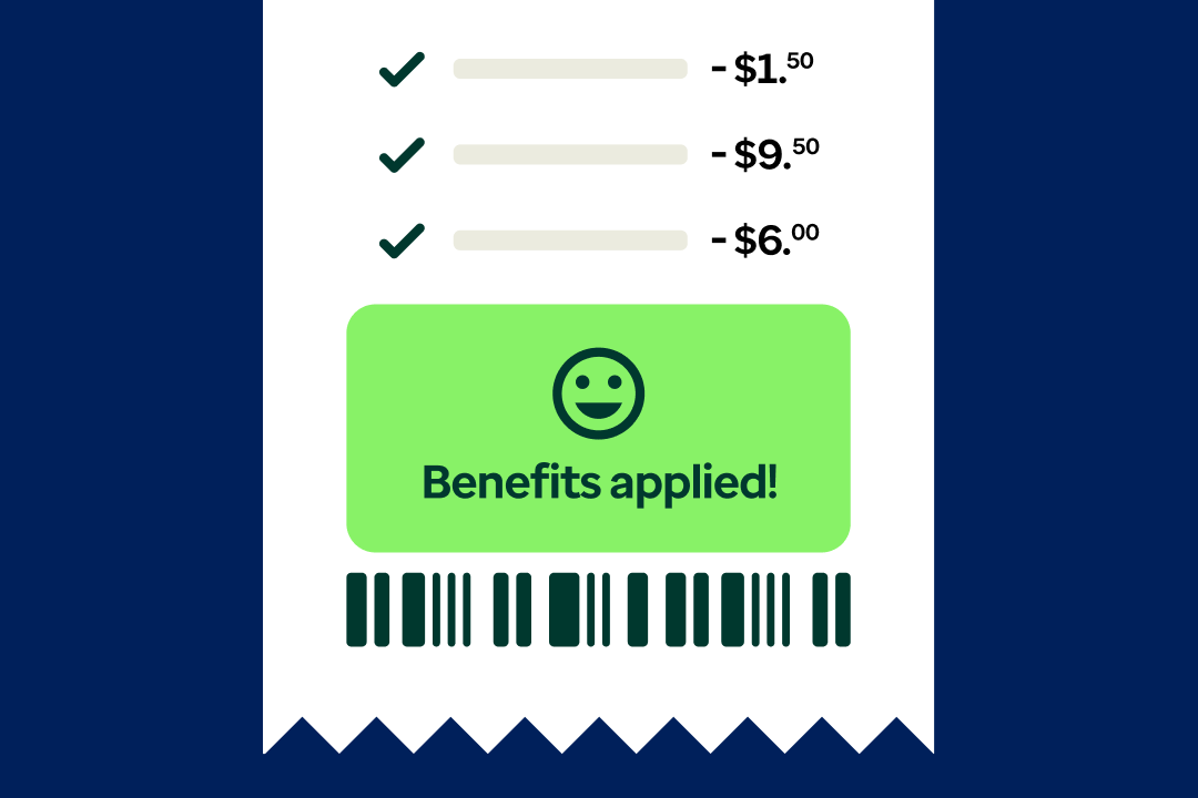 At checkout, your Healthy Benefits+ card automatically knows what's covered by your benefits.